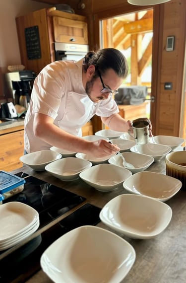 Le chef se charge de tout : achats, cuisine, service, ménage. La seule chose dont nous avons besoin, c'est d'un maximum d'informations (photo de votre cuisine, détails sur le déroulé de votre événement, matériel dont vous disposez, accessibilité du lieu de votre événement....)